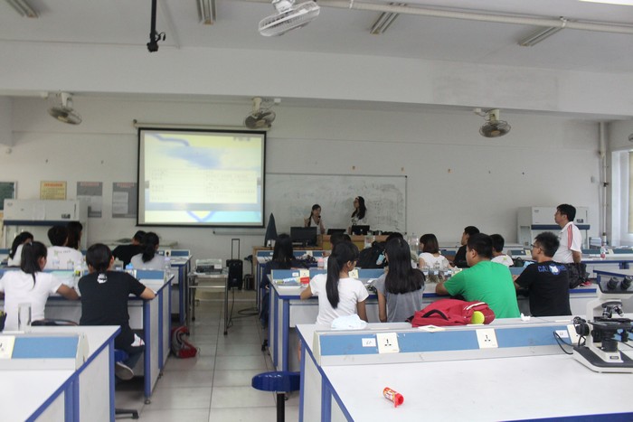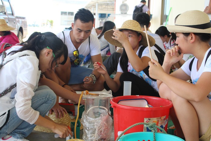 学生们对采集的养殖用海水样品进行现场检测