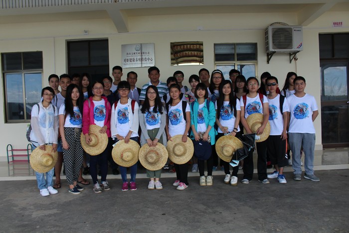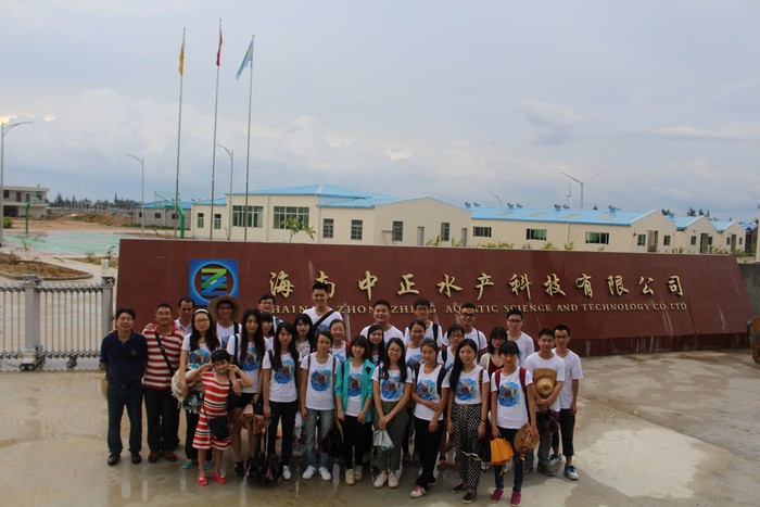 学生们在海南中正水产科技有限公司参观学习,并合影留恋