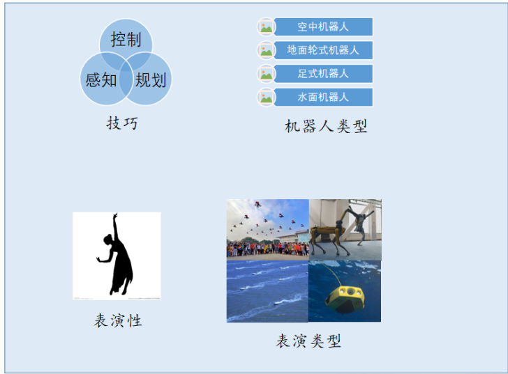 技巧表演赛旨在展示机器人的控制、规划、或感知的技巧,表演内容不限,时长建议不超过20分钟,我们将结合专家、现场观众和在线观众的投票评价表演赛的表演效果。技巧表演赛需要提前与主办方沟通关于机器人的尺寸、数量等。