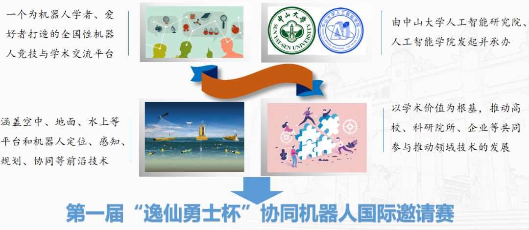 由中山大学人工智能研究院、人工智能学院承办的首届“逸仙勇士杯”协同机器人国际邀请赛(CICR 2023)将在2023年8月13-17日在中山大学珠海校区人工智能研究院大楼举办。
