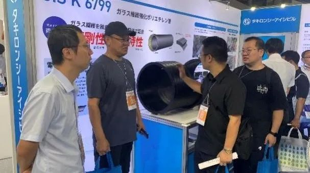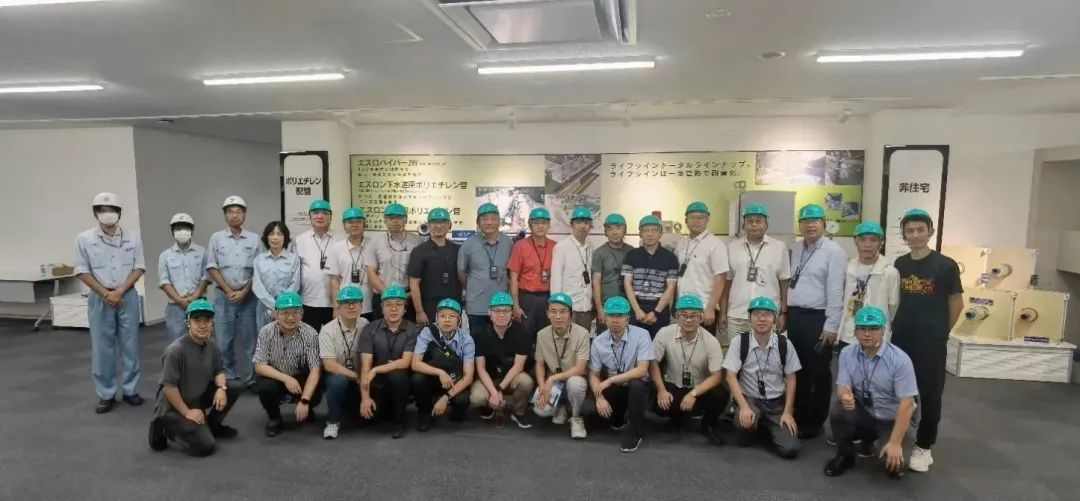 参观积水化学工业滋贺栗东工厂时,代表团一行与积水化学管道材料研发及制造部门的工程技术人员进行交流,双方对SPR工法的技术难点及关键工艺深入探讨,代表团成员还参观了非开挖修复用热塑成型塑料管道生产车间以及多系列制成品。