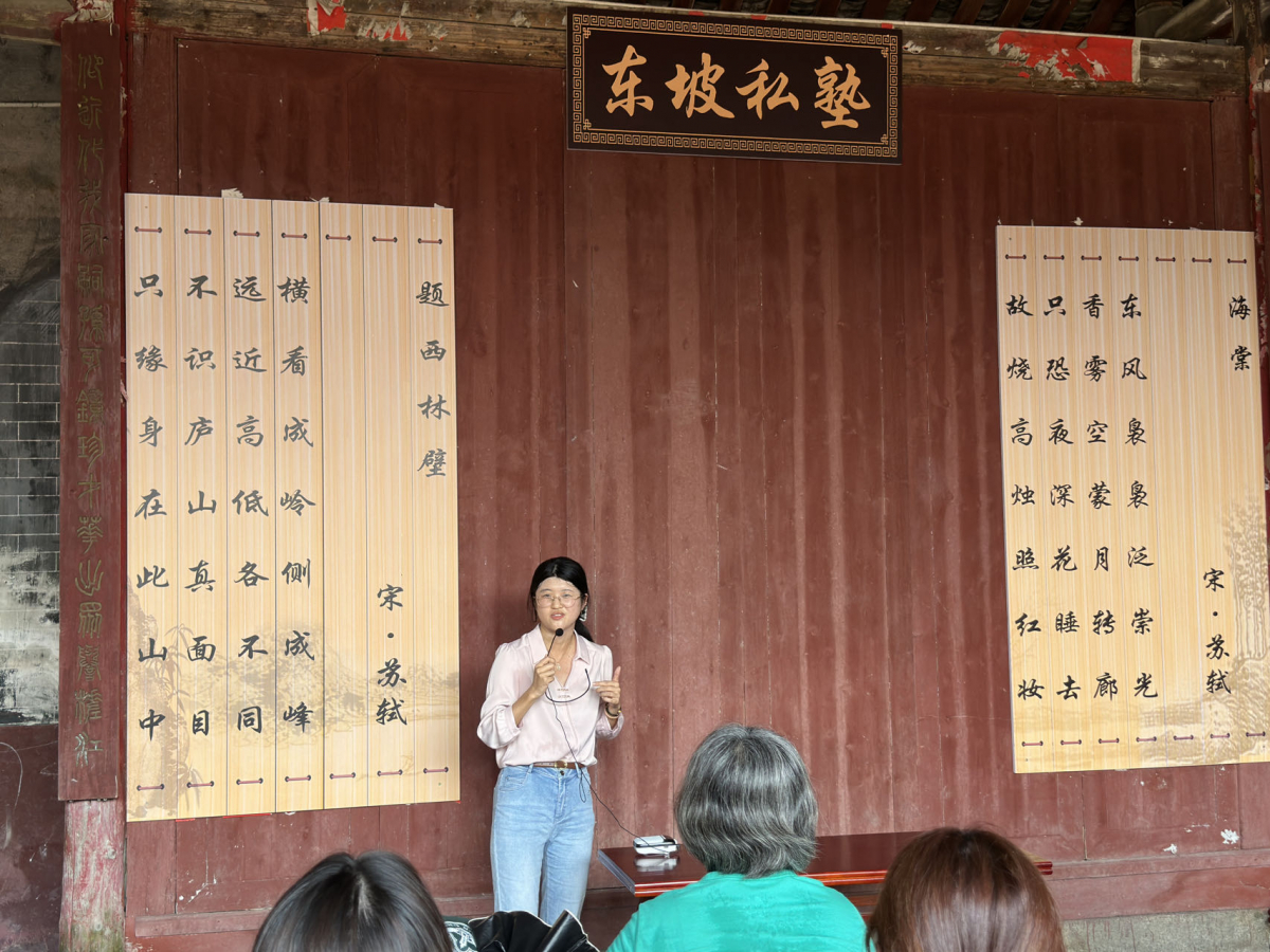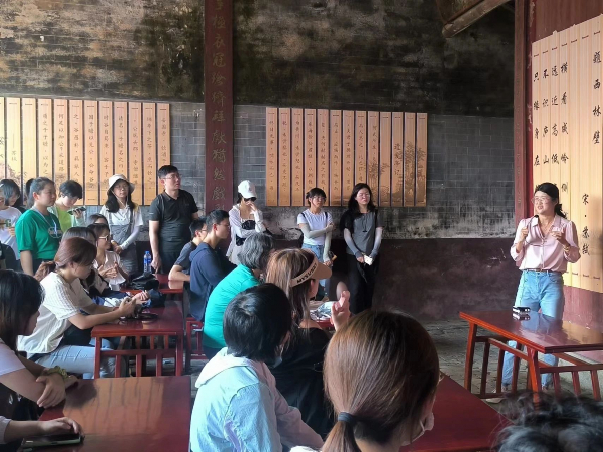 在参观完苏家围后,刘杰助理教授在此为同学们展开现场教学,着重讲述了苏轼与其子苏过的经历。苏过是苏轼与王闰之所生之子,他一生深受其父苏轼仕途影响而起伏不定。绍圣四年,苏过抱着赴死的决心,安顿好妻儿后,主动提出陪伴照顾被贬海南的父亲。在海南艰苦的条件下,苏过亲手抄录《汉书》《唐书》等著作,并与父亲苏轼一起阅读、诗词唱和。受苏轼影响,苏过于颠沛流离的生活中保持安贫乐道的生活态度,耕读传家。苏轼父子身处困境却自强不息的精神,以及苏轼后裔耕读传家的良好家风传统,使同学们对宋朝士人的精神风尚有了更深刻的理解。