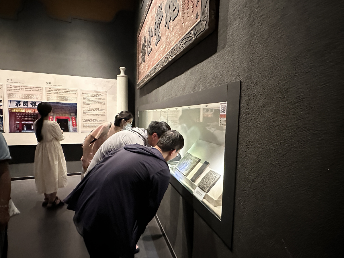 拾级而上,文珠师生来到主馆二楼所设基本陈列《客家人》。《客家人》着眼“大客家”,通过客家渊源、客家风俗、客家民居、客家文化、客家精神等主题全面展示客家民系的历史与发展。在“英才翘楚”展区,展示了一代又一代客家先贤的生平与事迹,人文才俊星光璀璨。客家人从中原而来,保持着耕读传家、崇文重教的儒家传统,因此在诗歌、文学、书法和艺术等诸多领域培育了不少杰出英才,如“岭南第一才子”宋湘、一诗轰动诗坛的温训、爱国诗人丘逢甲等。