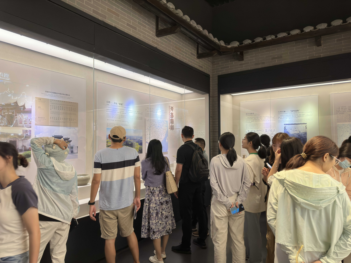 次日,文珠师生来到梅州市客家博物馆,这是中国首家全面展示客家民系文化渊源与发展,系统收藏、整理、研究、展示客家历史文物与民俗文物的综合性博物馆。走进主馆客家博物馆,映入眼帘的是一个大大的“亻厓”字,“亻厓”是客家话中的第一人称,有学者认为其发音是古汉语中第一人称“我”(一说“吾”)的发音。作为汉语七大方言之一,客家话保留了古汉语在不同历史时期的语音、词汇及语法特色,被誉为“古汉语的活化石”。