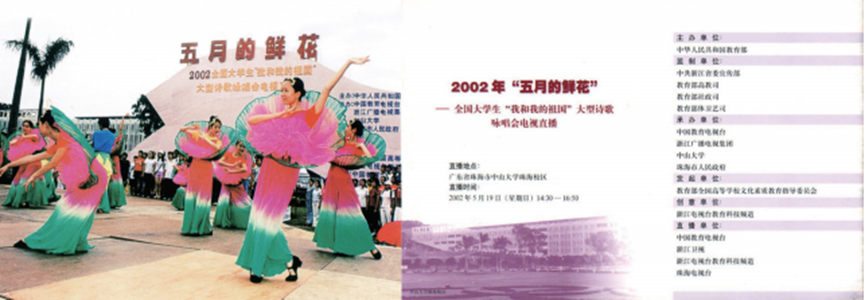 教育部高等教育司副司长刘凤泰、高等学校素质教育指导委员会副主任胡显章、中国教育电视台台长李鹏、浙江省政府副秘书长蒋泰维、浙江省委宣传部副部长沈立江等,中山大学校长黄达人、党委副书记陈伟林、副校长杨晓光,珠海市委副书记罗春柏、副市长余荣霭和20多所高校的校领导出席现场直播活动。该活动由教育部主办,陈至立部长担任组委会主任,中国教育电视台、浙江广电集团、中山大学、珠海市人民政府联合承办。参加咏唱会表演的有清华大学、中国人民大学等20多所著名高校的5000余名大学生。