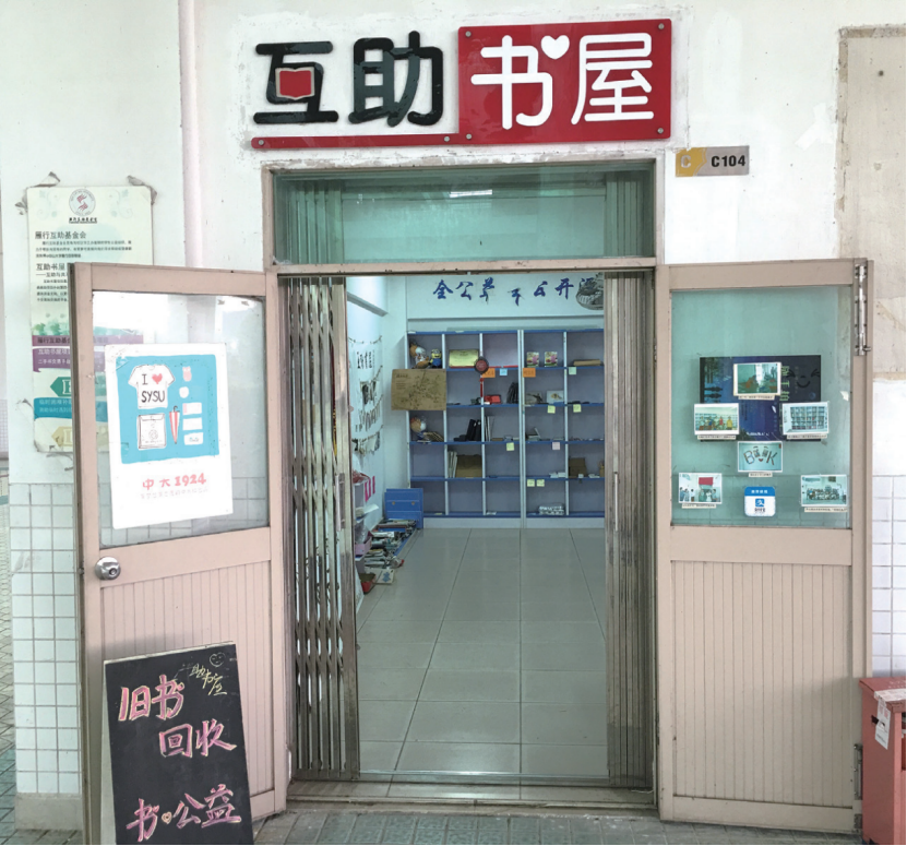 图 2. 公益书店“互助书屋”由珠海校区本科生创立于 2013年6月5日,书屋将旧书折价后卖给师生,所得款项用于帮扶校内外公益活动。旨在让旧书循环利用,传递爱心,助人互助(珠海校区管委会供稿)