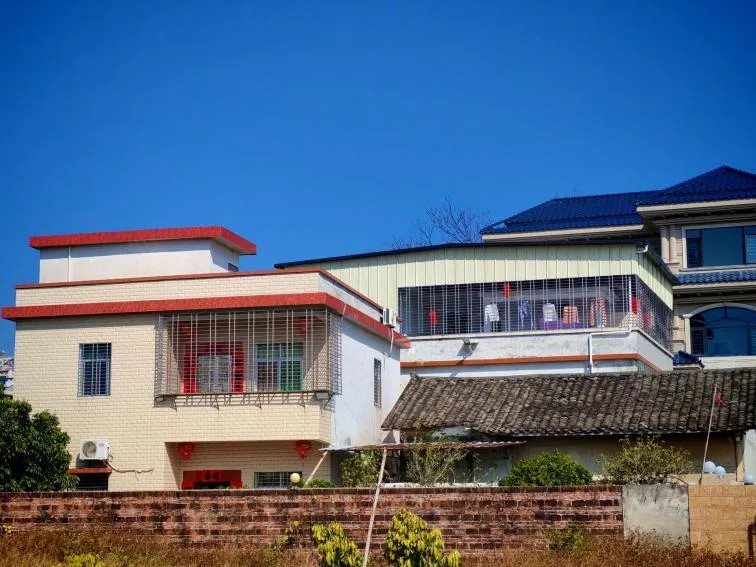 经济的发展除了体现在交通系统的完善上,还有农村里的“旧貌换新颜”与“新旧并存”。大部分人家已经从老屋里搬出来,住进了这十几年间新建的小洋楼。