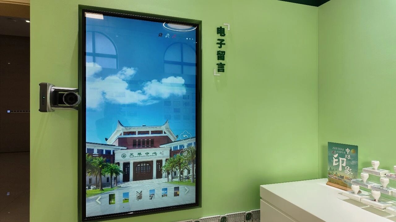 电子留言屏:参观者可在电子留言屏写下心情或感想,搭配独特的中珠电子印章,扫码即可保存至手机,让个人身影成为中珠记忆的一部分。